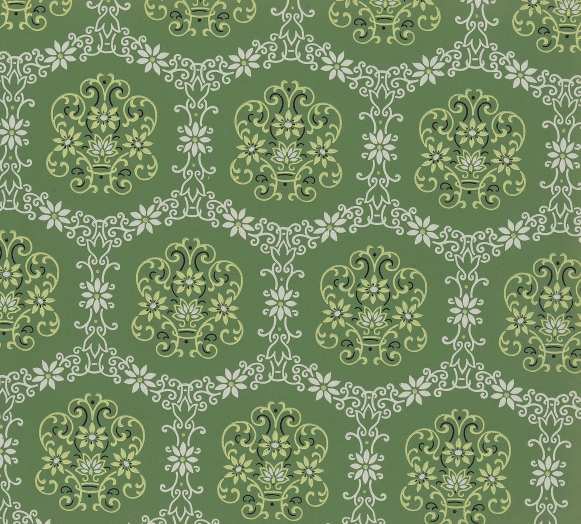Portion of wallpaper. Crown, 1950-79. Machine surface printed wallpaper.