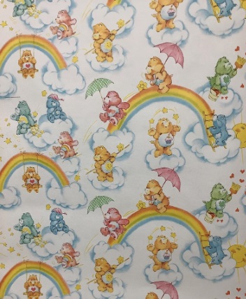 On display in the Open House exhibition are four photographs by the artist David Moore from his ‘Pictures From the Real World’ series taken in Derby in 1988-89. One of the photographs is a vibrant image of a bedroom. The door has a wrestling poster on it but in juxtaposition the wallpaper contains patterns of care bears sliding down rainbows and floating on clouds. This was my childhood wallpaper – and the first one that I remember! Both David’s photograph and the wallpaper transport me right back to my childhood. A time when I often felt carefree and went into my own imaginary world of magic and making up and performing dances. It’s amazing how imagery has the ability to unlock memories and feelings that are buried within your mind somewhere!