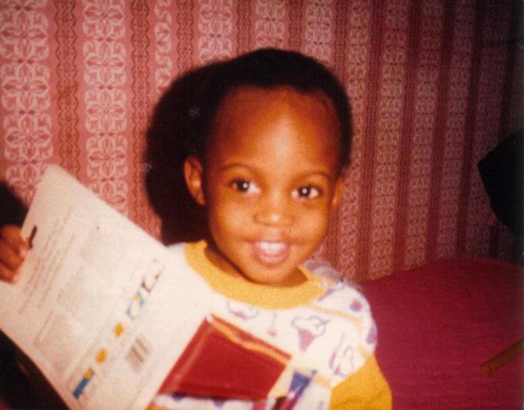 This boy of mine is what the Bajan would call ‘too busy’. Cheeky Ravelle wanted to stay up late and he did, till 2am. My mother was going to Barbados and was packing. Bedding was very frilly, and the wallpaper was ‘beautiful’ as it was my mother’s bedroom. He was was trying to stay up – it’s in Mum’s bedroom – you can just about see the bedspread, the pink thing on the bed.