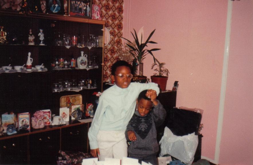 Marc and Ravelle – both cousins, messing about seeing who was the tallest that Christmas. The cabinet was pride and place. Woo!! That wallpaper was picked by my mother, she loved her browns and burgundy. If you could only see the settees. The cupboard next to them was Mum’s pride and joy, it took up practically the whole of the front room wall that we weren’t to go in. Caroline Leacock