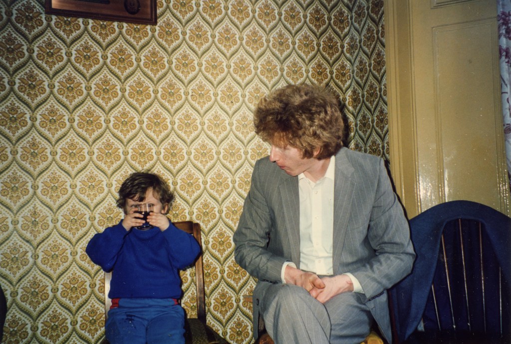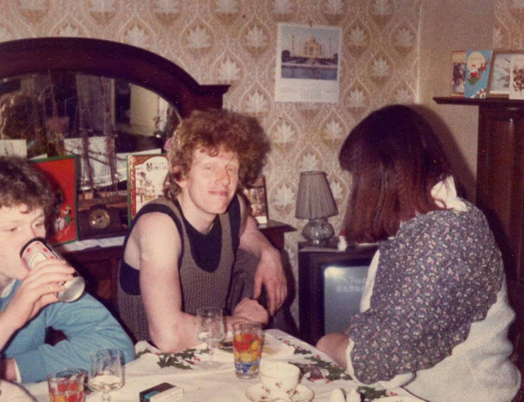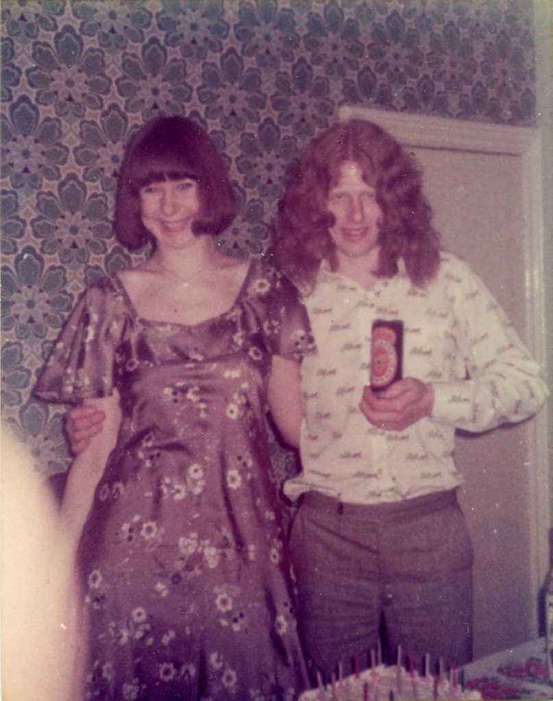 This is my Mum and Dad, at my Mum’s friend Heather’s house for her twenty-first birthday. I think it was quite close to when they got engaged. My Dad [laughs] being quite, like, proud of the can of ‘Newkie Brown’ is strange for me to see because he definitely doesn’t drink that now. I guess that the finger in the front of the lens is probably my Uncle Simon’s and I could also hazard a guess that my Dad’s wearing platform shoes there, ‘cos he wore them to get married as well